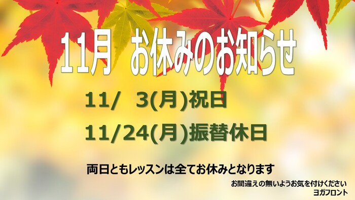 11月のスタジオスケジュールが決まりましたので、お知らせいたします。