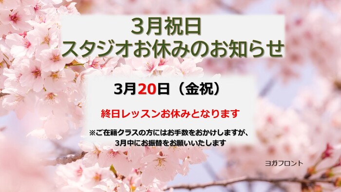3月のスタジオお休みのお知らせです