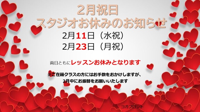 2月のスタジオお休みのお知らせです